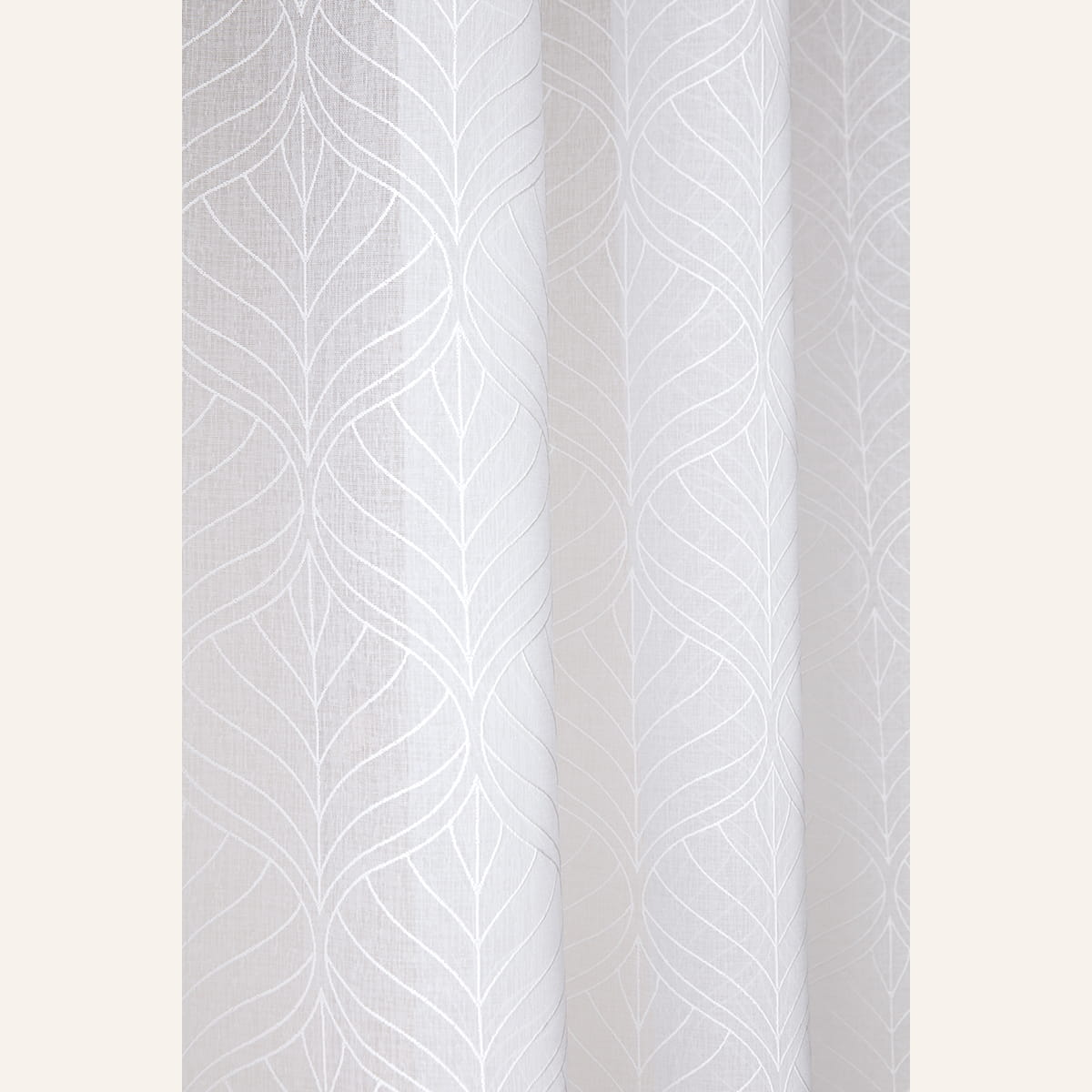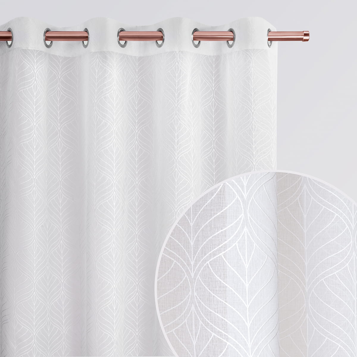 Modne białe firanki we wzory na przelotkach 140x240