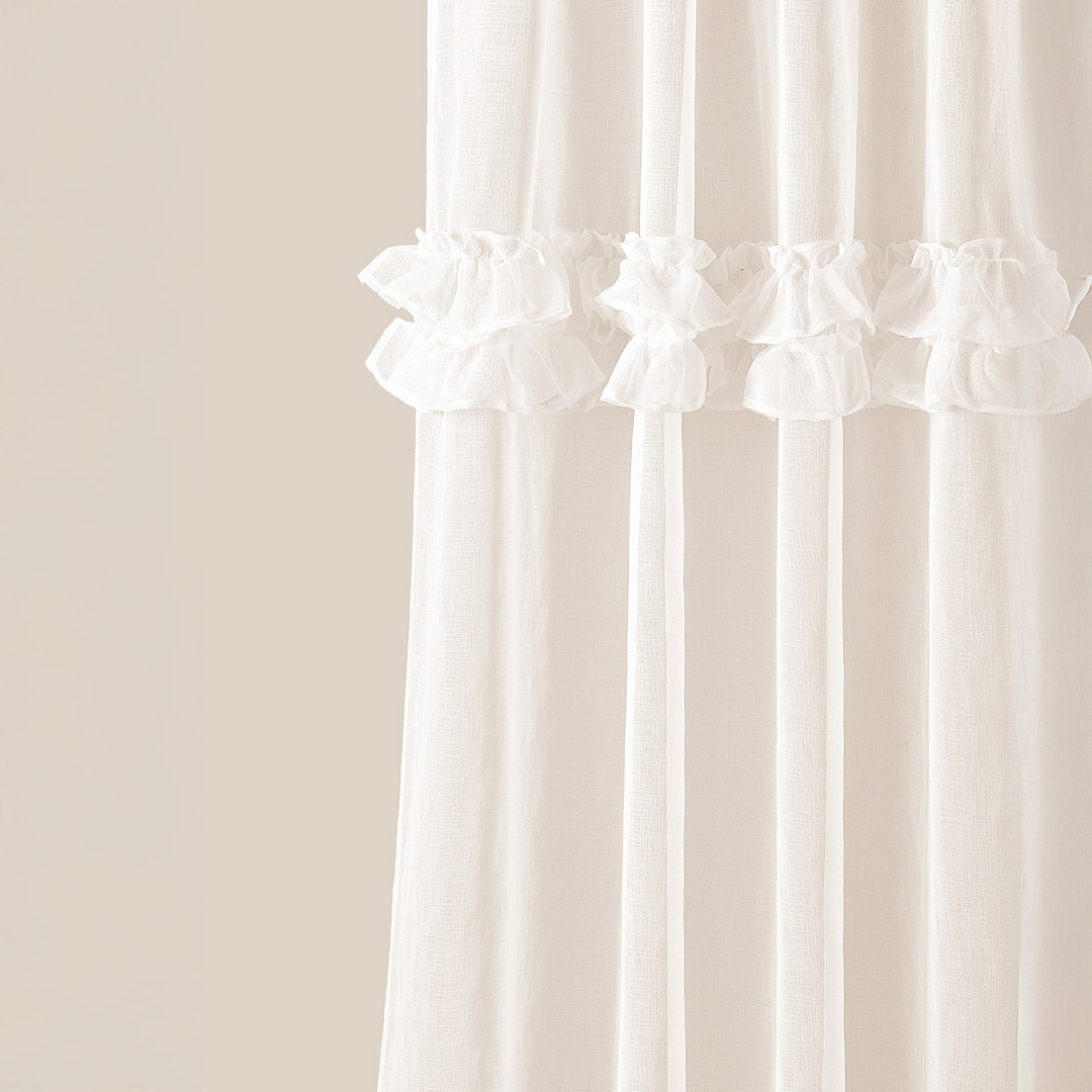 Dekoracyjna firana kremowa z falbaną Frilla 300 x 250 cm na przelotkach do sypialni