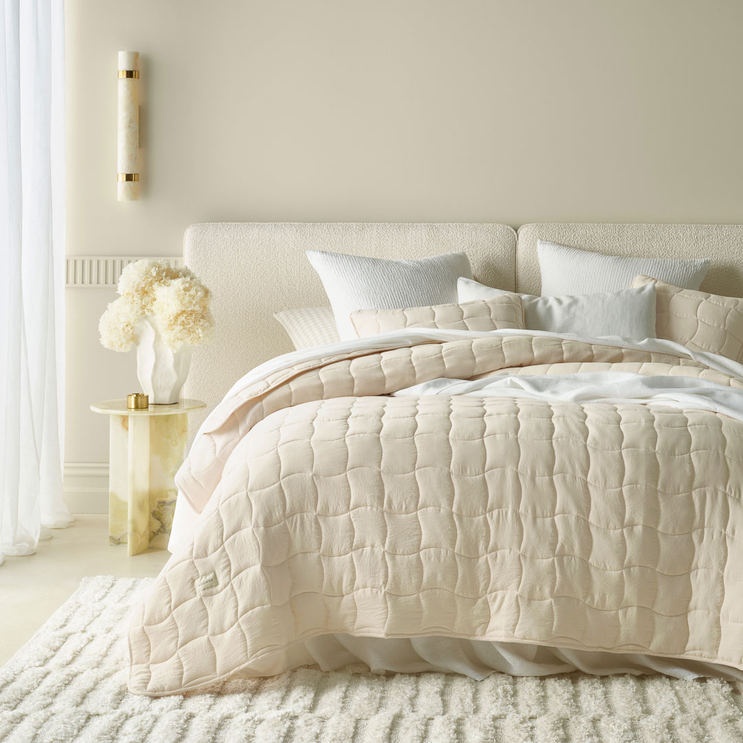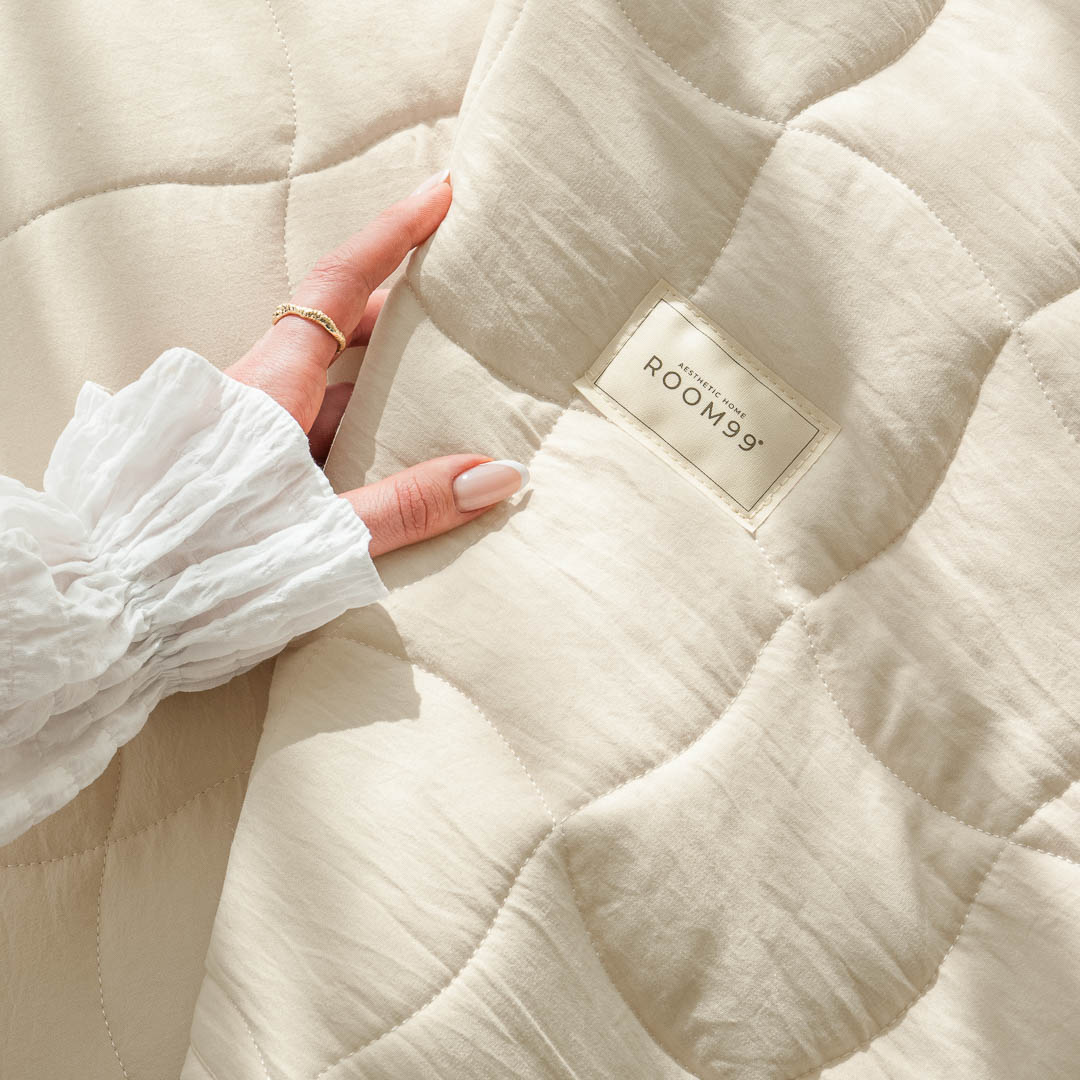 • Matowa tkanina narzuty miękko okrywa łóżko, nie zsuwa się i pozostaje na swoim miejscu przez cały dzień.