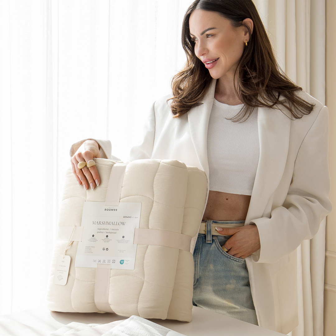 Przestrzenie do odpoczynku lubią się ze wszystkim, co miłe, miękkie, sprężyste i przytulne. Narzuta na łóżko Marshmallow to sensoryczna bezpieczna przystań, w której nie liczy się nic poza błogim odpoczynkiem.