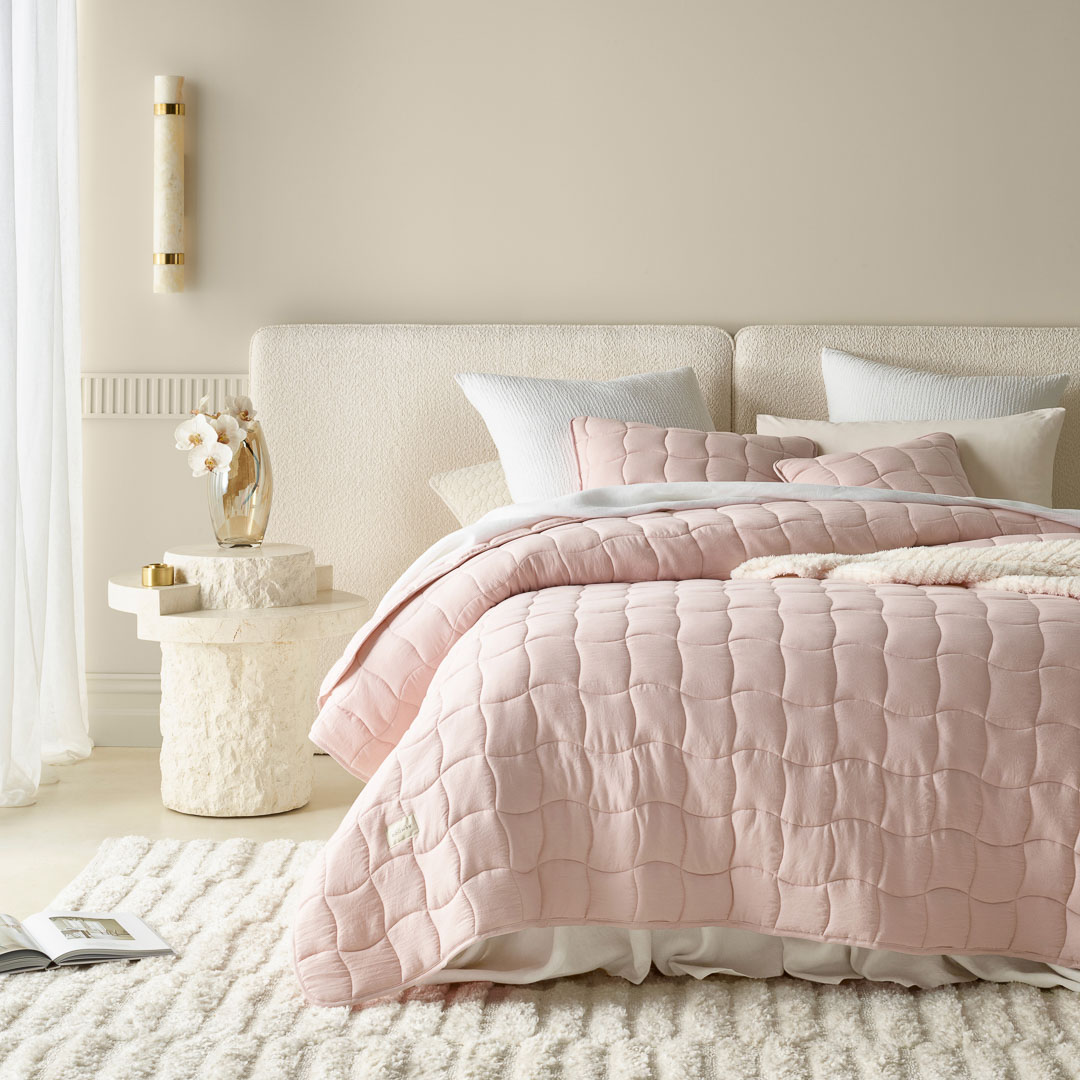Pikowana narzuta na łóżko 220x240 do sypialni w kolorze pudrowego różu