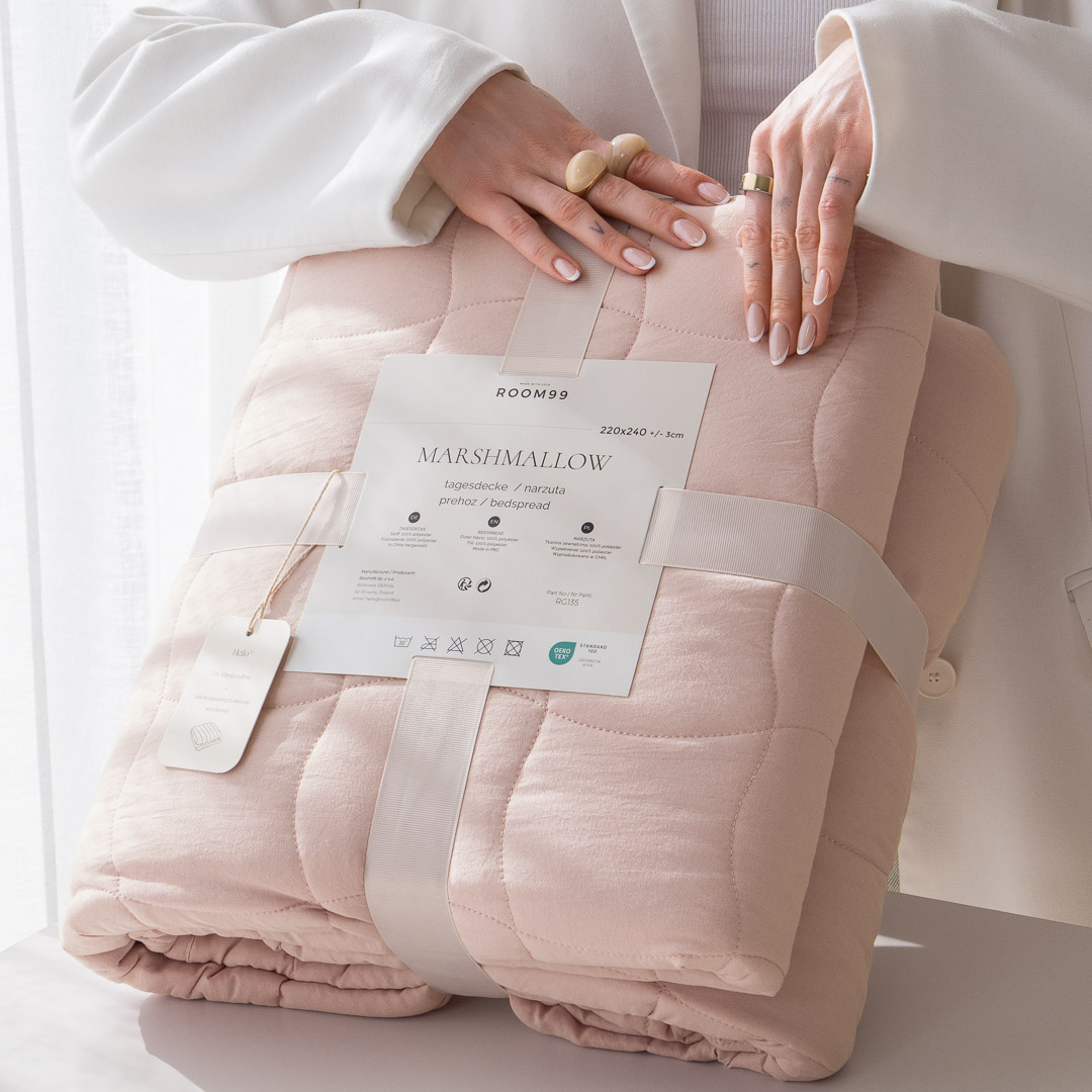 Przestrzenie do odpoczynku lubią się ze wszystkim, co miłe, miękkie, sprężyste i przytulne. Narzuta na łóżko Marshmallow to sensoryczna bezpieczna przystań, w której nie liczy się nic poza błogim odpoczynkiem.