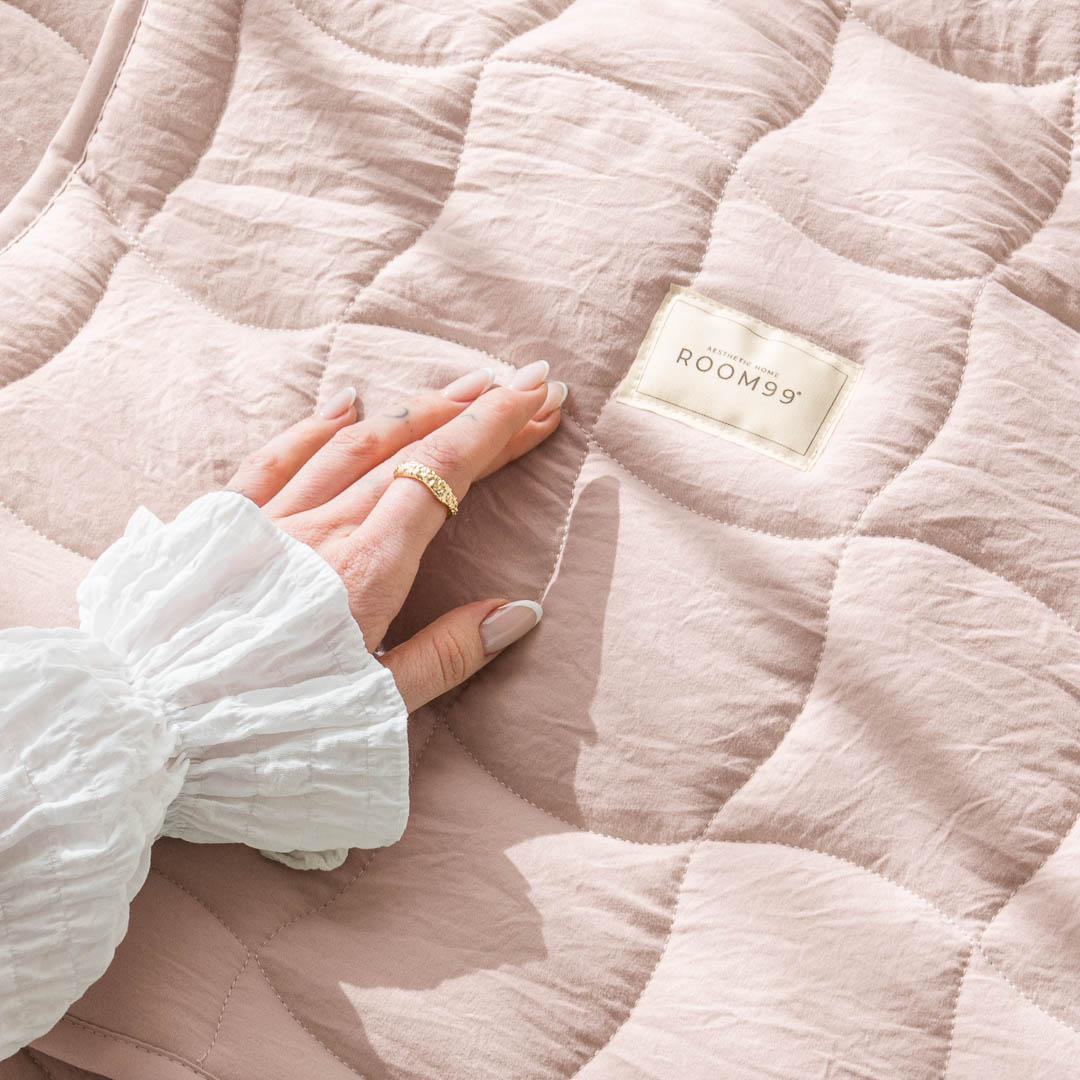 • Matowa tkanina narzuty miękko okrywa łóżko, nie zsuwa się i pozostaje na swoim miejscu przez cały dzień.