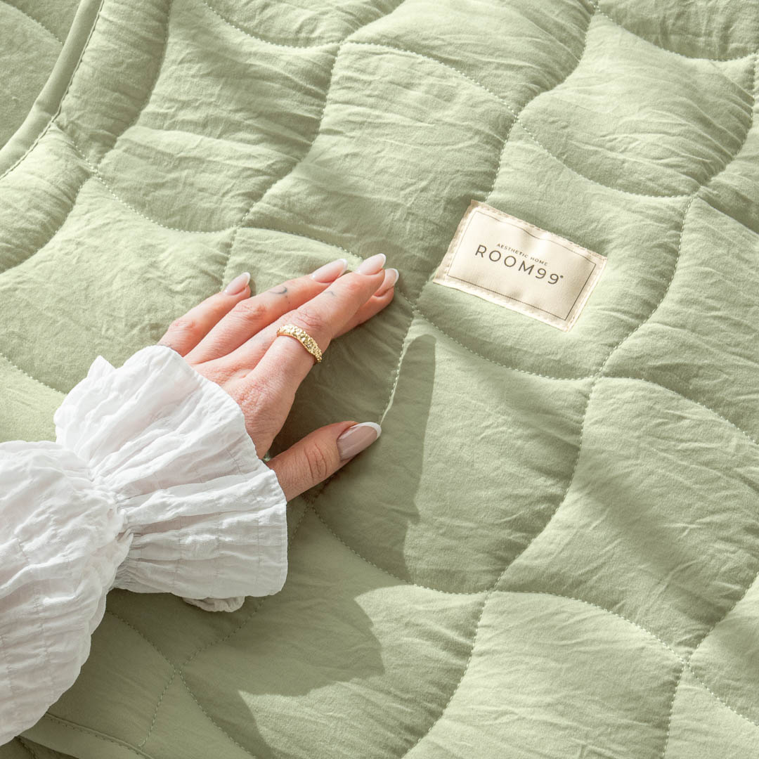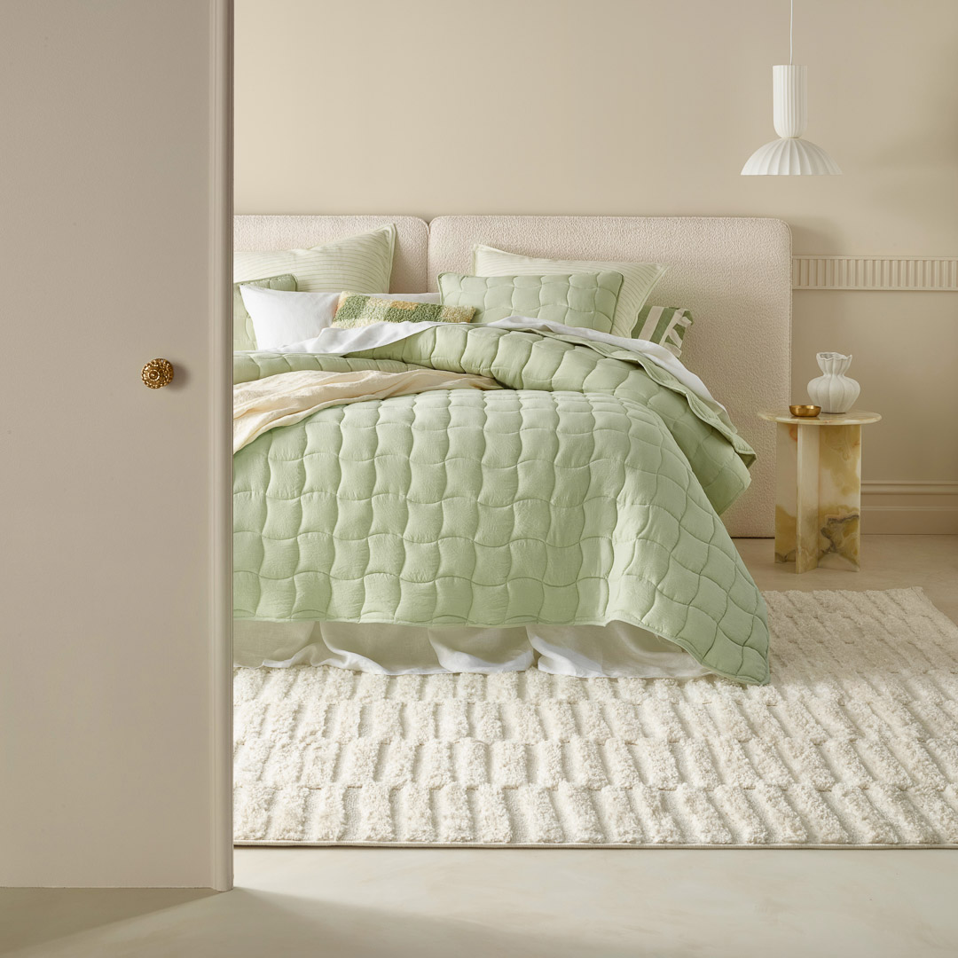 Narzuta na łóżko 220x240 do sypialni w kolorze jasnej zieleni