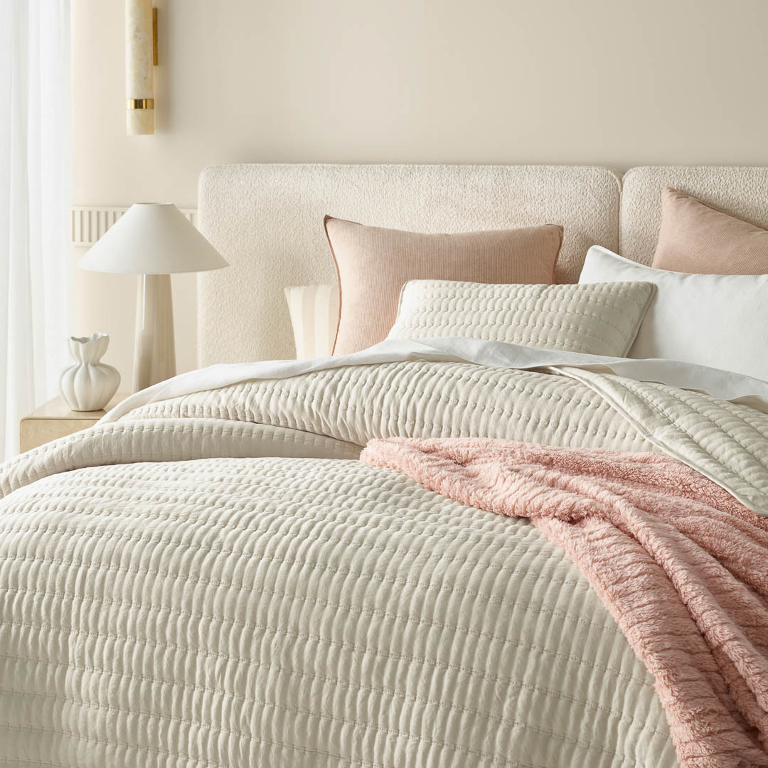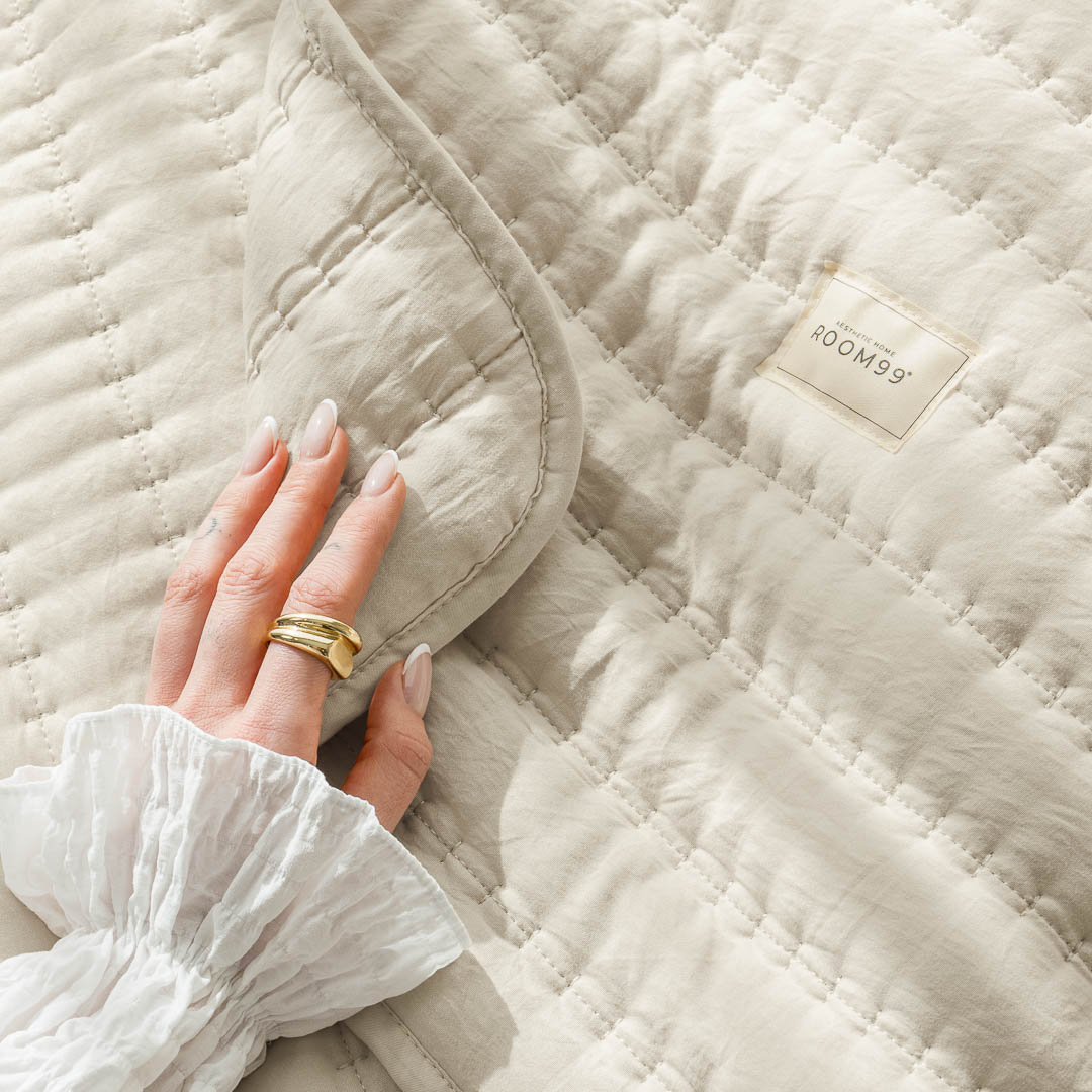 Narzuta na łóżko Mùse to opowieść o lekkości i strukturze, które spotykają się w idealnej równowadze. Gęste pikowanie tworzy wyraźny, uporządkowany wzór, który nadaje tkaninie wyrazistości i nowoczesnego charakteru. Uszyta z przyjemnej, matowej tkaniny, łączy w sobie funkcjonalność i piękno – układa się gładko, porządkuje przestrzeń i dodaje wnętrzu harmonii. Wypełnienie o większej objętości otula łóżko puszystą miękkością, zapraszając do zanurzenia się w chwilę relaksu. Ta narzuta to więcej niż okrycie — to detal, który podkreśla styl i nadaje sypialni nową energię.