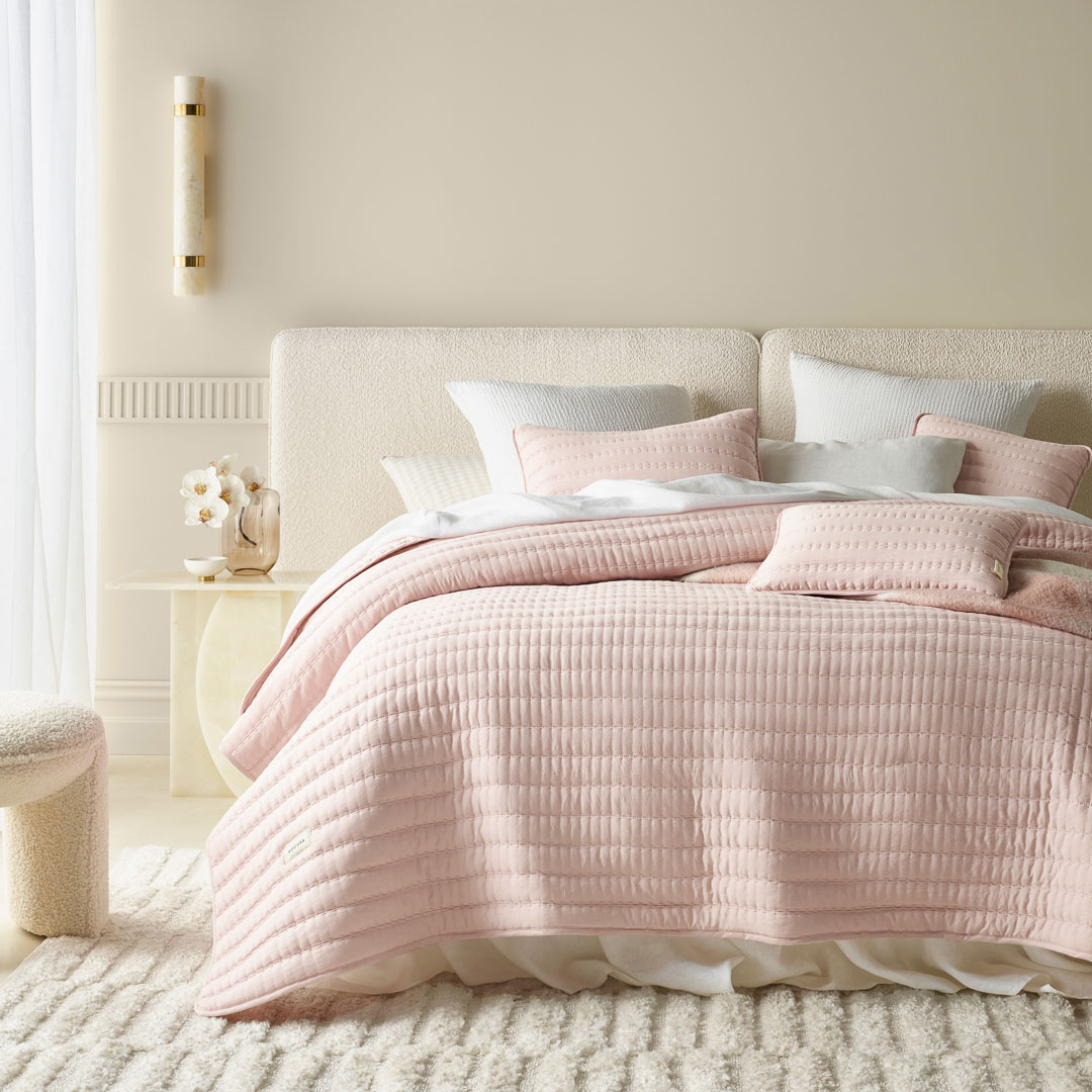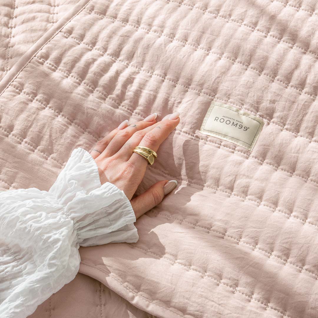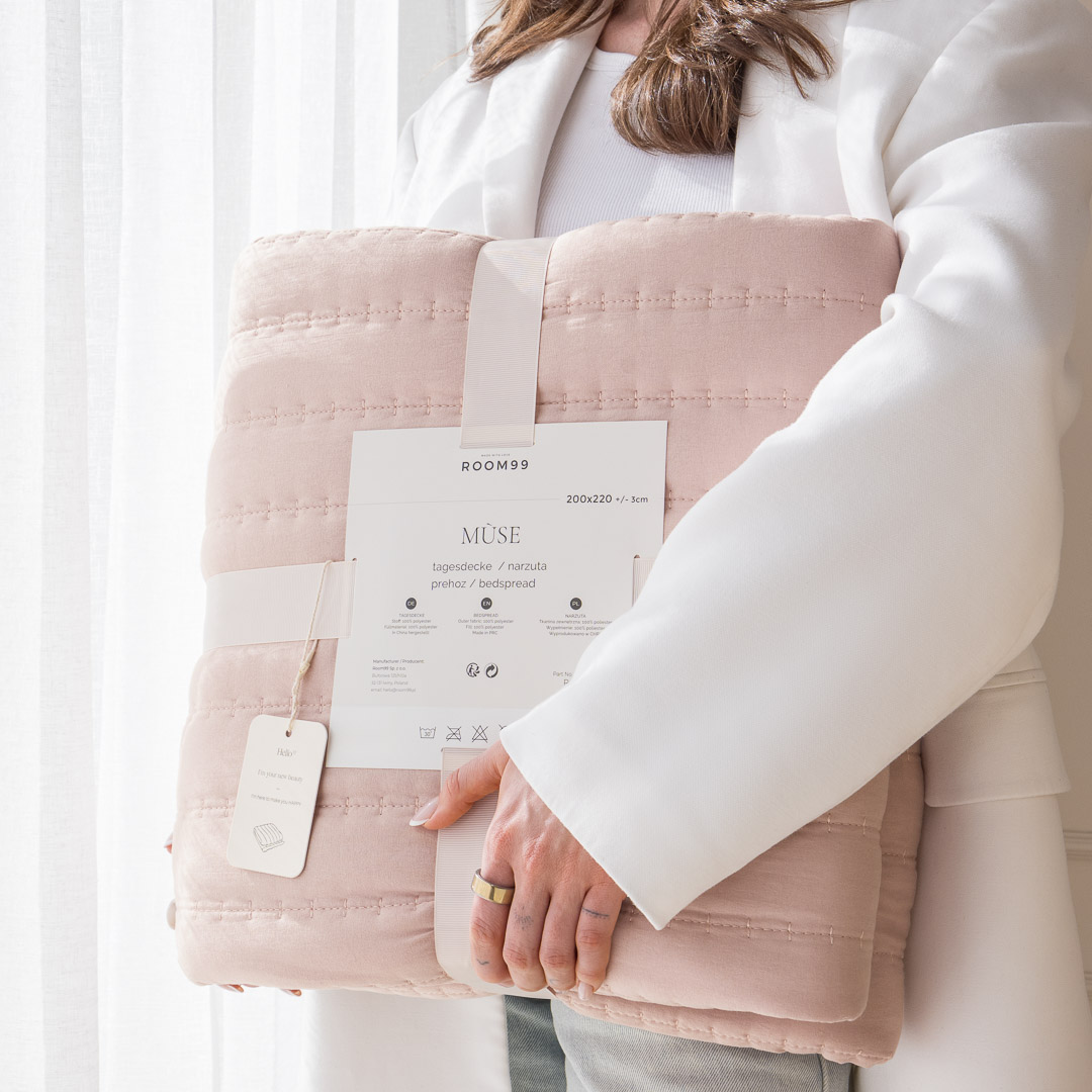 Narzuta na łóżko 220x240 do sypialni w kolorze pudrowego różu Mùse