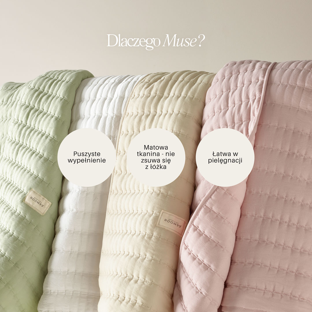 Narzuta na łóżko Mùse to opowieść o lekkości i strukturze, które spotykają się w idealnej równowadze. Gęste pikowanie tworzy wyraźny, uporządkowany wzór, który nadaje tkaninie wyrazistości i nowoczesnego charakteru. Uszyta z przyjemnej, matowej tkaniny, łączy w sobie funkcjonalność i piękno – układa się gładko, porządkuje przestrzeń i dodaje wnętrzu harmonii. Wypełnienie o większej objętości otula łóżko puszystą miękkością, zapraszając do zanurzenia się w chwilę relaksu. Ta narzuta to więcej niż okrycie — to detal, który podkreśla styl i nadaje sypialni nową energię.