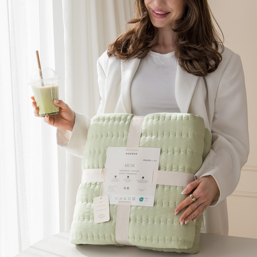Narzuta na łóżko Mùse to opowieść o lekkości i strukturze, które spotykają się w idealnej równowadze. Gęste pikowanie tworzy wyraźny, uporządkowany wzór, który nadaje tkaninie wyrazistości i nowoczesnego charakteru. Uszyta z przyjemnej, matowej tkaniny, łączy w sobie funkcjonalność i piękno – układa się gładko, porządkuje przestrzeń i dodaje wnętrzu harmonii. Wypełnienie o większej objętości otula łóżko puszystą miękkością, zapraszając do zanurzenia się w chwilę relaksu. Ta narzuta to więcej niż okrycie — to detal, który podkreśla styl i nadaje sypialni nową energię.