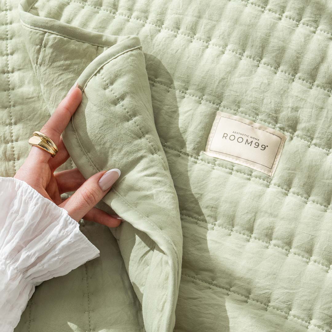 • Matowa tkanina narzuty miękko okrywa łóżko, nie zsuwa się i pozostaje na swoim miejscu przez cały dzień.