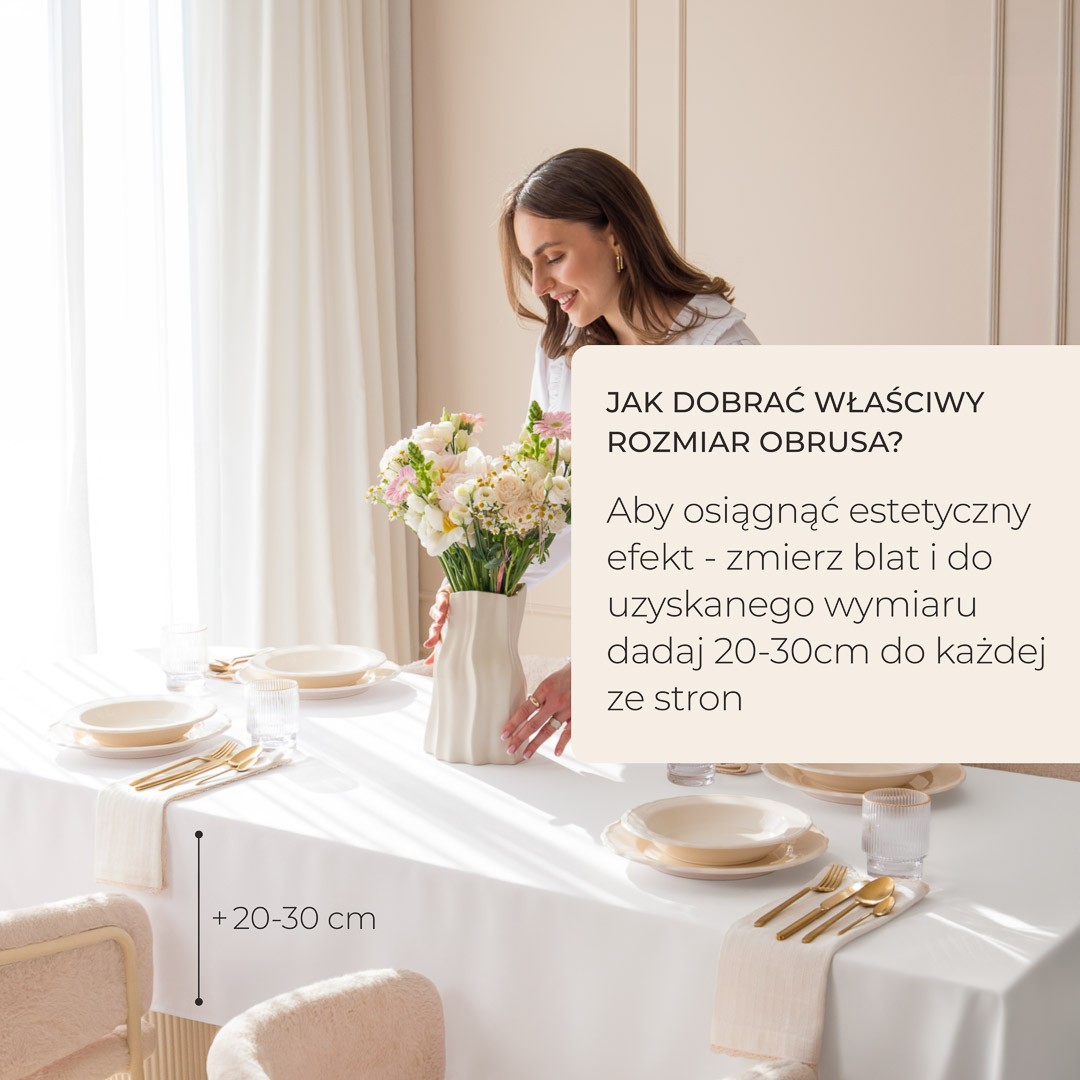 Plamoodporny obrus Aura z wdziękiem udekoruje stół podczas codziennych spotkań i uroczystych chwil takich jak święta, komunie, wesela oraz urodziny. Obrus Aura znajduje również szerokie zastosowanie w restauracjach i lokalach gastronomicznych. Miękka, matowa i gładka tkanina z której został uszyty doskonale układa się na stole.