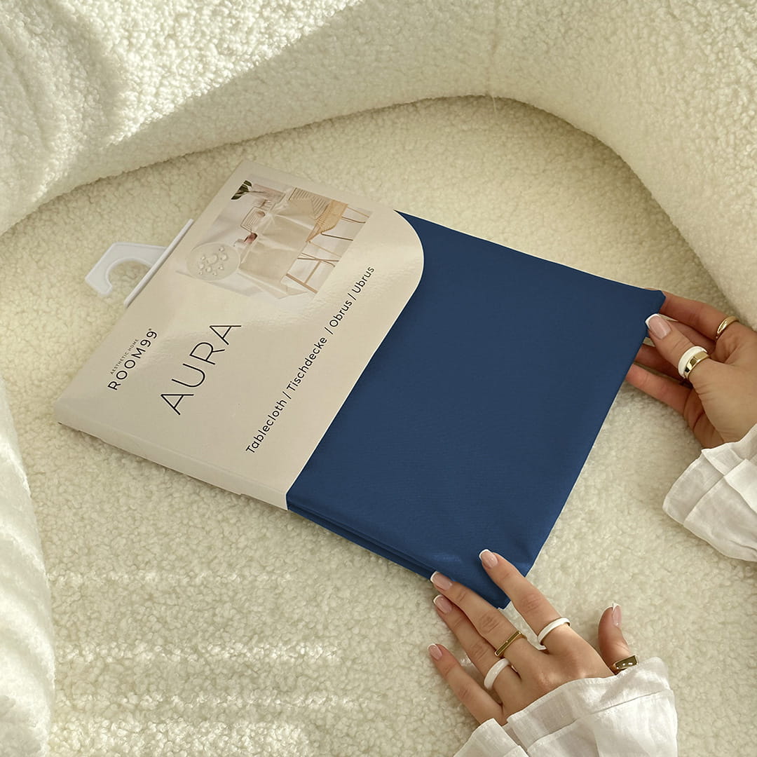 Wodoodporny granatowy obrus Aura 110x160 do jadalni