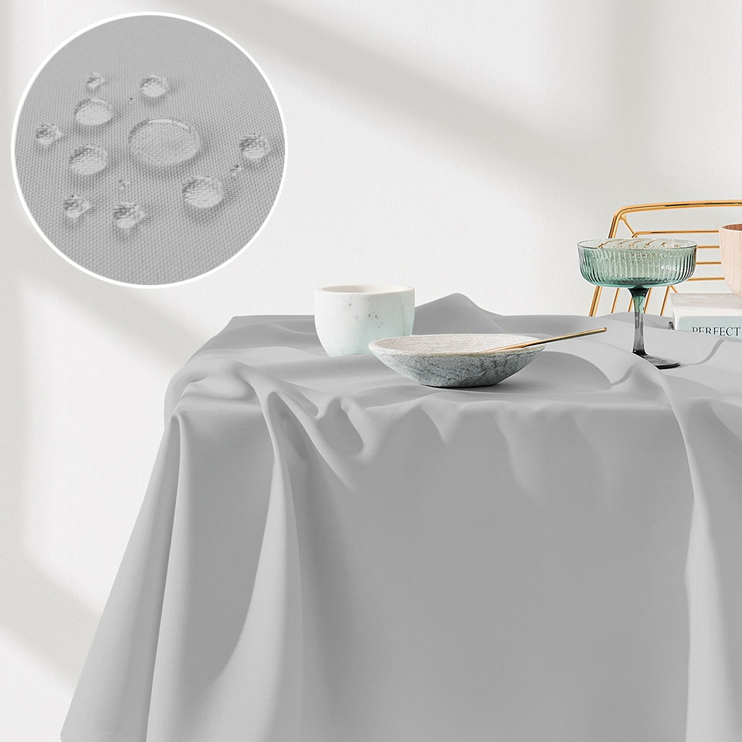 Obrus został zabezpieczony apreturą plamoodporną co uniemożliwia przenikanie cieczy i powstrzymuje powstawanie trwałych zabrudzeń. Zabieg ten sprawia, że rozlany płyn tworzy ,,efekt kropelek'' i nie wnika w strukturę obrusa, dzięki czemu przez długi czas zachowuje świeżość i schludny wygląd.