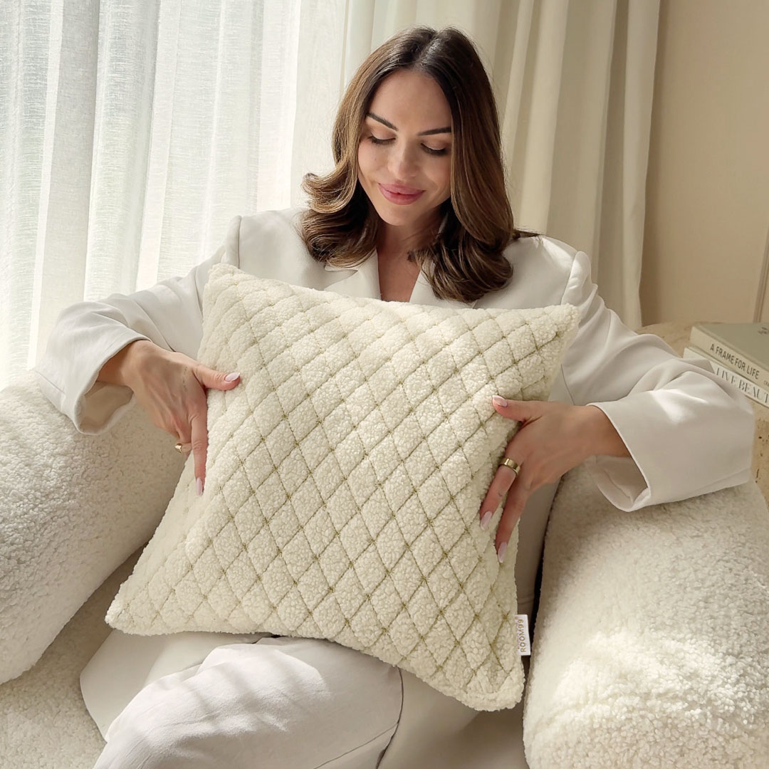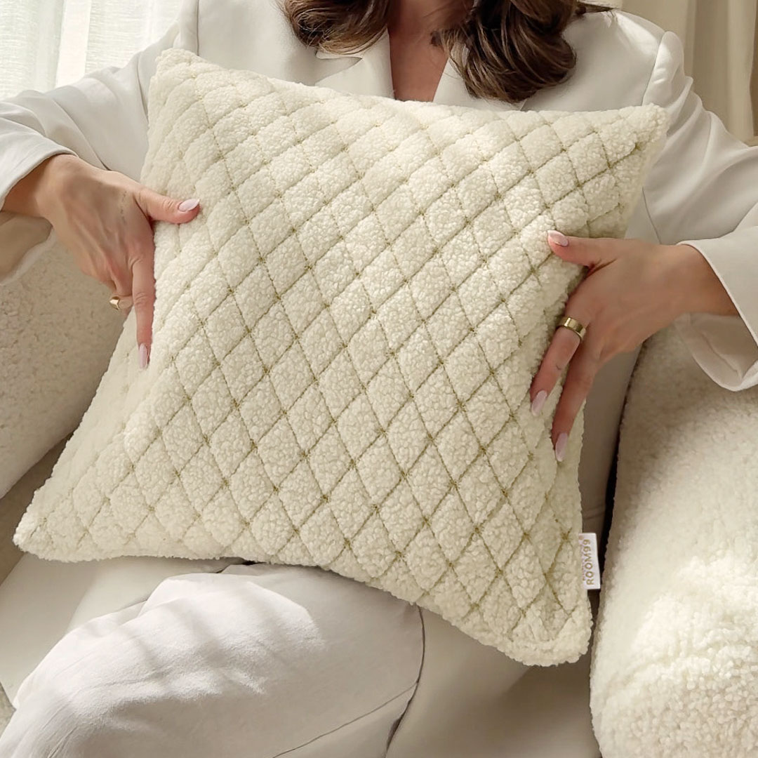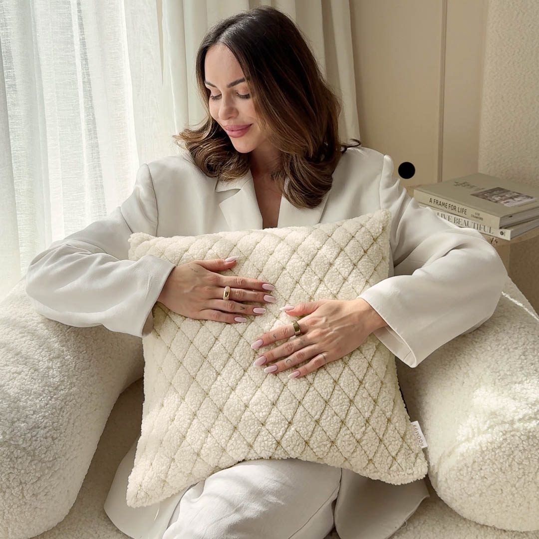 Delikatna, przytulna, a jednocześnie pełna blasku – idealna poduszka do wnętrz, które pragną subtelnej elegancji.