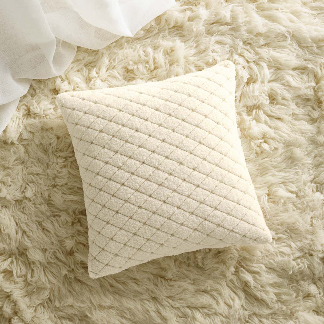 Poduszka dekoracyjna składająca się z poszewki bouclé i białego antyalergicznego wypełnienia