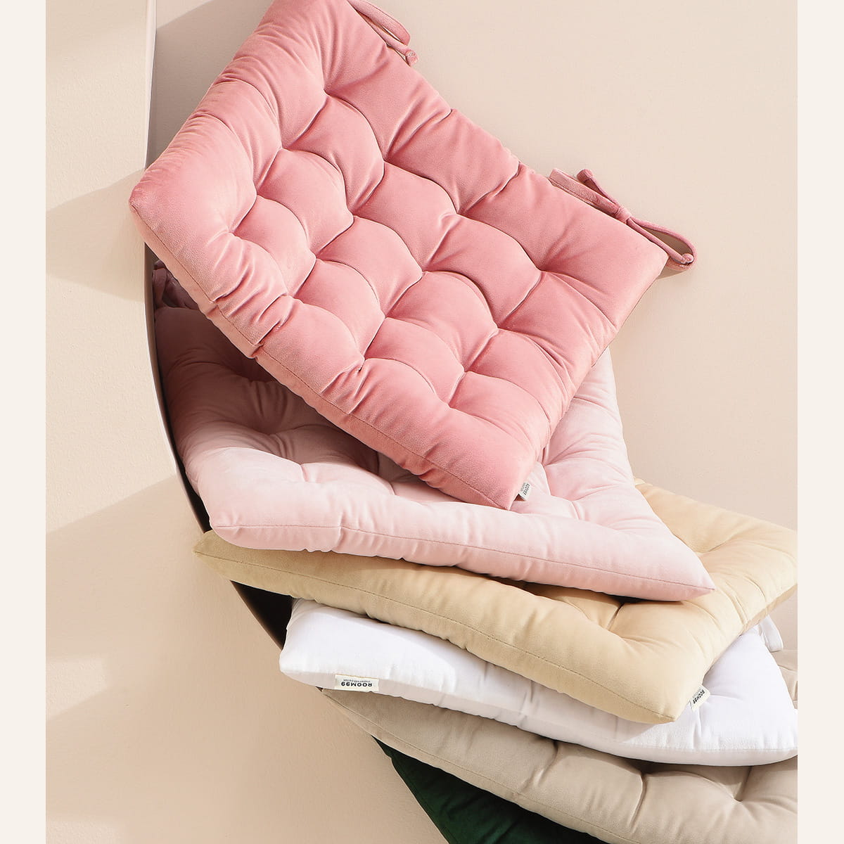 Miękkie siedzisko na krzesło 40x40 poduszka beżowa z wiązaniem