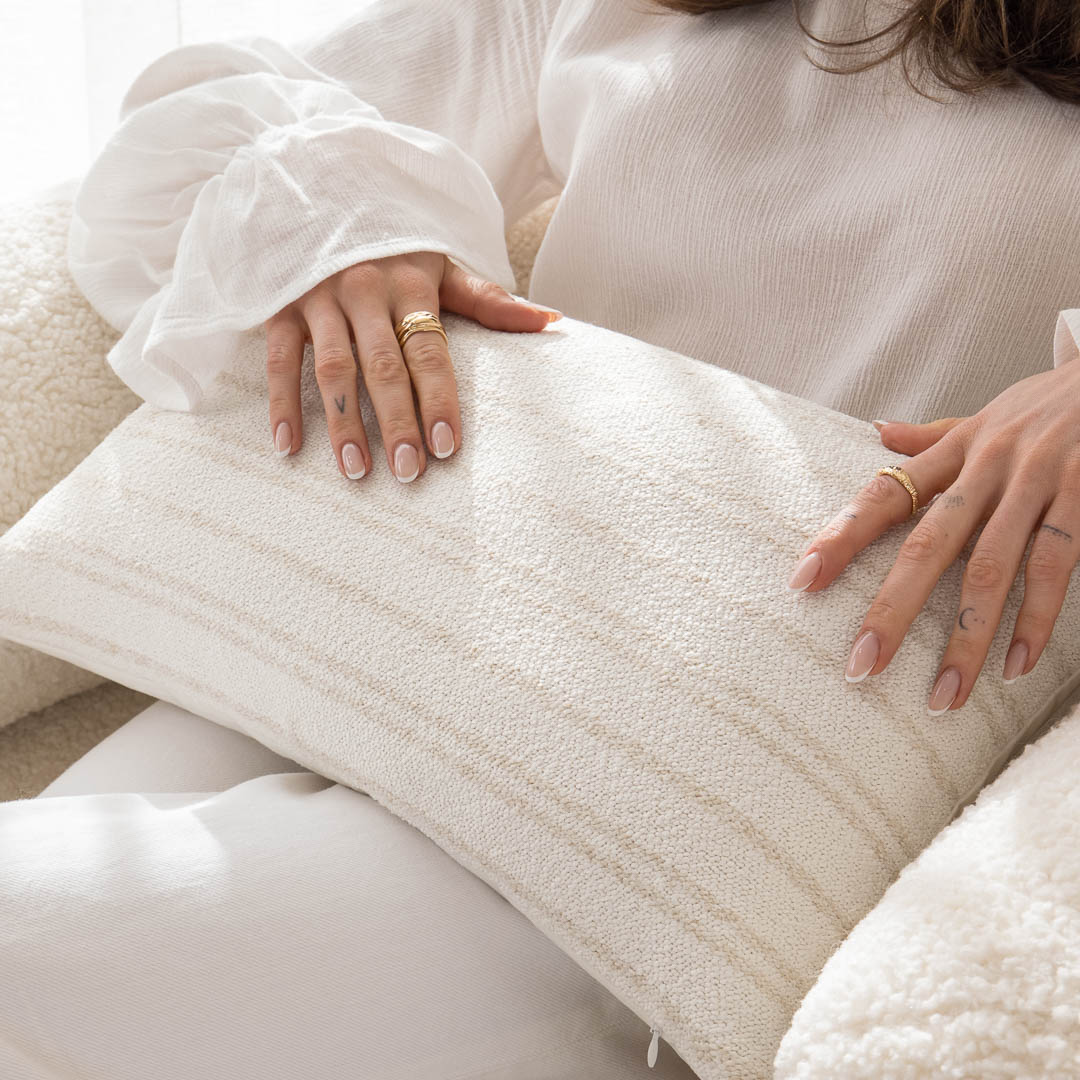 Poszewka dekoracyjna Clair została wykonana z miękkiej, przyjemnej w dotyku tkaniny, która pięknie odbija światło. W tej kolekcji jasna kolorystyka i delikatny wzór w harmonijne pasy idealnie łączą się, tworząc atmosferę łagodności i równowagi. To idealny wybór, jeśli zależy Ci na efekcie subtelnej przytulności w eleganckim wydaniu. Zobacz, jak poszewka dekoracyjna Clair potrafi odmienić przestrzeń swoją miękką obecnością.