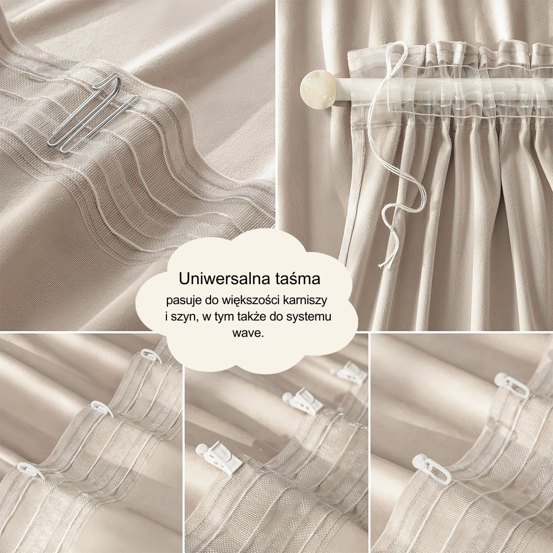 System wave zasłony gotowe  welurowe jasny beż 140x250 na taśmie do sypialni