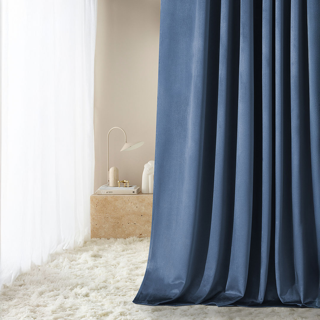 Zasłona welurowa Bianca wykonana jest z miękkiej i aksamitnej tkaniny, otula wnętrze delikatnymi falami, wprowadzając przytulny i kojący nastrój. Jej subtelny połysk podkreśla głębię barw, tworząc ciepłą, elegancką atmosferę. Gęsto tkany materiał o wysokiej gramaturze skutecznie przyciemnia pomieszczenie, sprzyjając błogim chwilom relaksu.