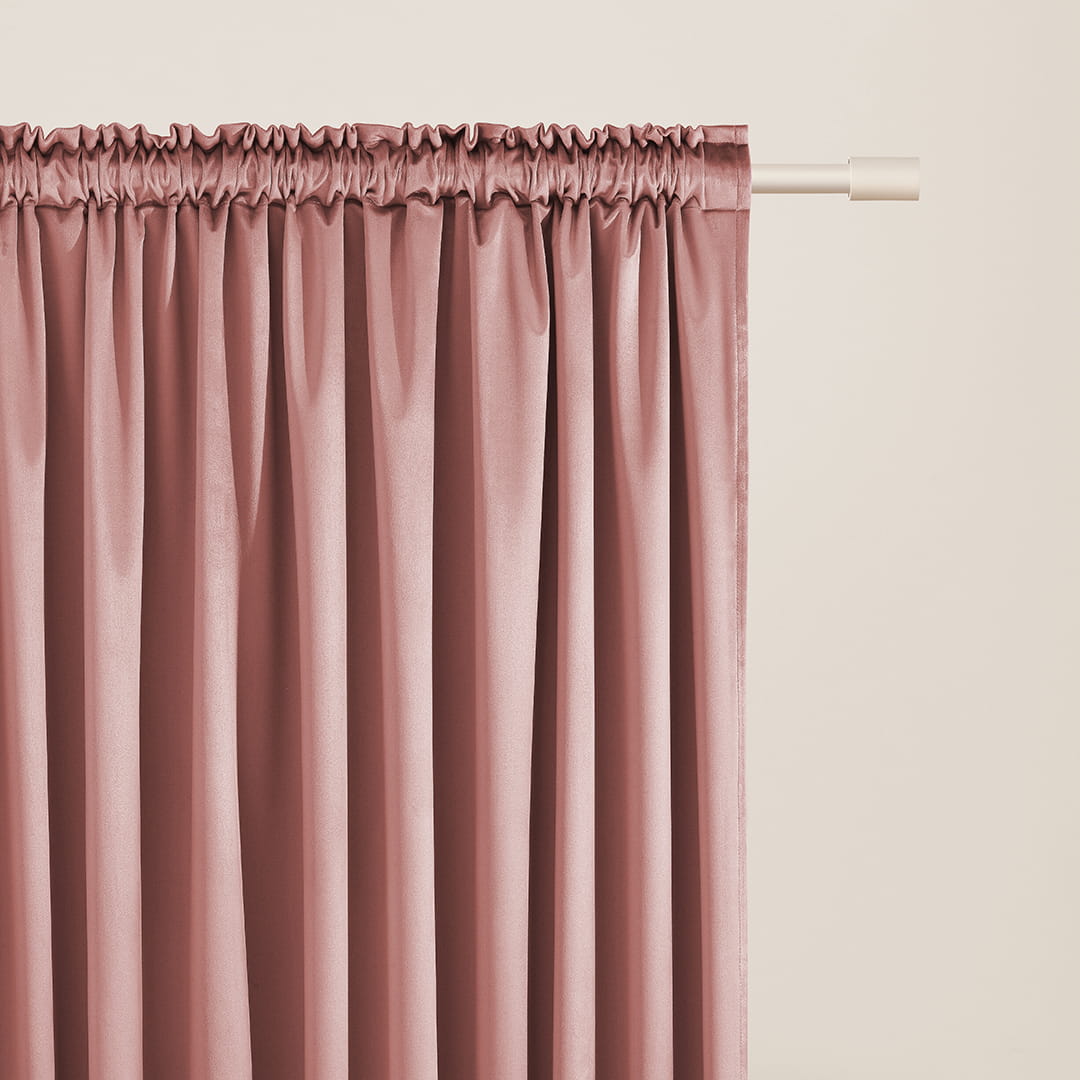 Zasłony na taśmę wave gotowe welurowe w kolorze różu indyjskiego 180x280 gładkie do salonu i sypialni