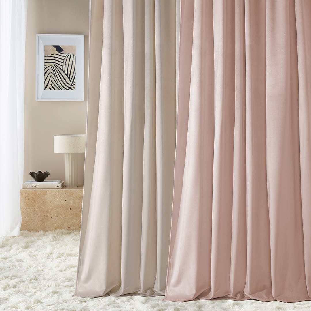 Zasłona welurowa Bianca wykonana jest z miękkiej i aksamitnej tkaniny, otula wnętrze delikatnymi falami, wprowadzając przytulny i kojący nastrój. Jej subtelny połysk podkreśla głębię barw, tworząc ciepłą, elegancką atmosferę. Gęsto tkany materiał o wysokiej gramaturze skutecznie przyciemnia pomieszczenie, sprzyjając błogim chwilom relaksu.