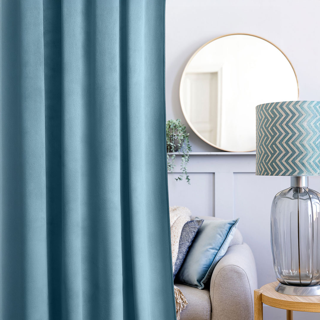 Niebieska modna zasłona welwetowa na kółkach - Room99