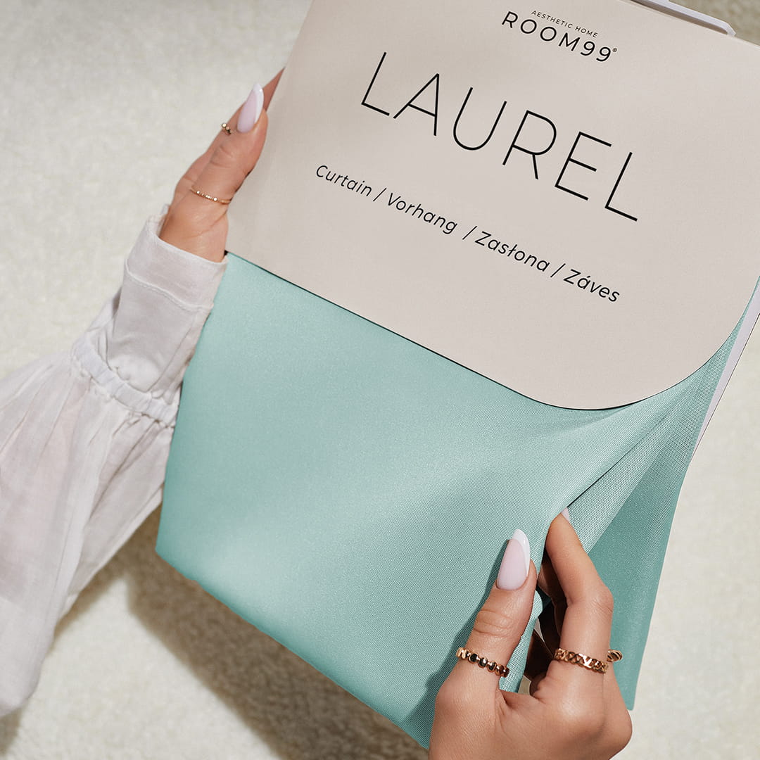 Zasłona Laurel została uszyta z wysokiej jakości, matowej, tkaniny o gęstym splocie. Zawieszona w oknie przepięknie układa się tworząc efekt miękkich fal. Gruby materiał doskonale zaciemnia pomieszczenie, chroni wnętrze przed słońcem oraz zapewnia większą prywatność.
